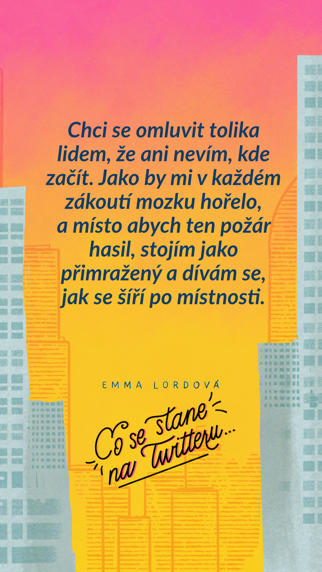 Chci se omluvit tolika lidem, že ani nevím, kde začít. Jako by mi v každém zákoutí mozku hořelo, a místo abych ten požár hasil, stojím jako přimražený a dívám se, jak se šíří po místnosti.