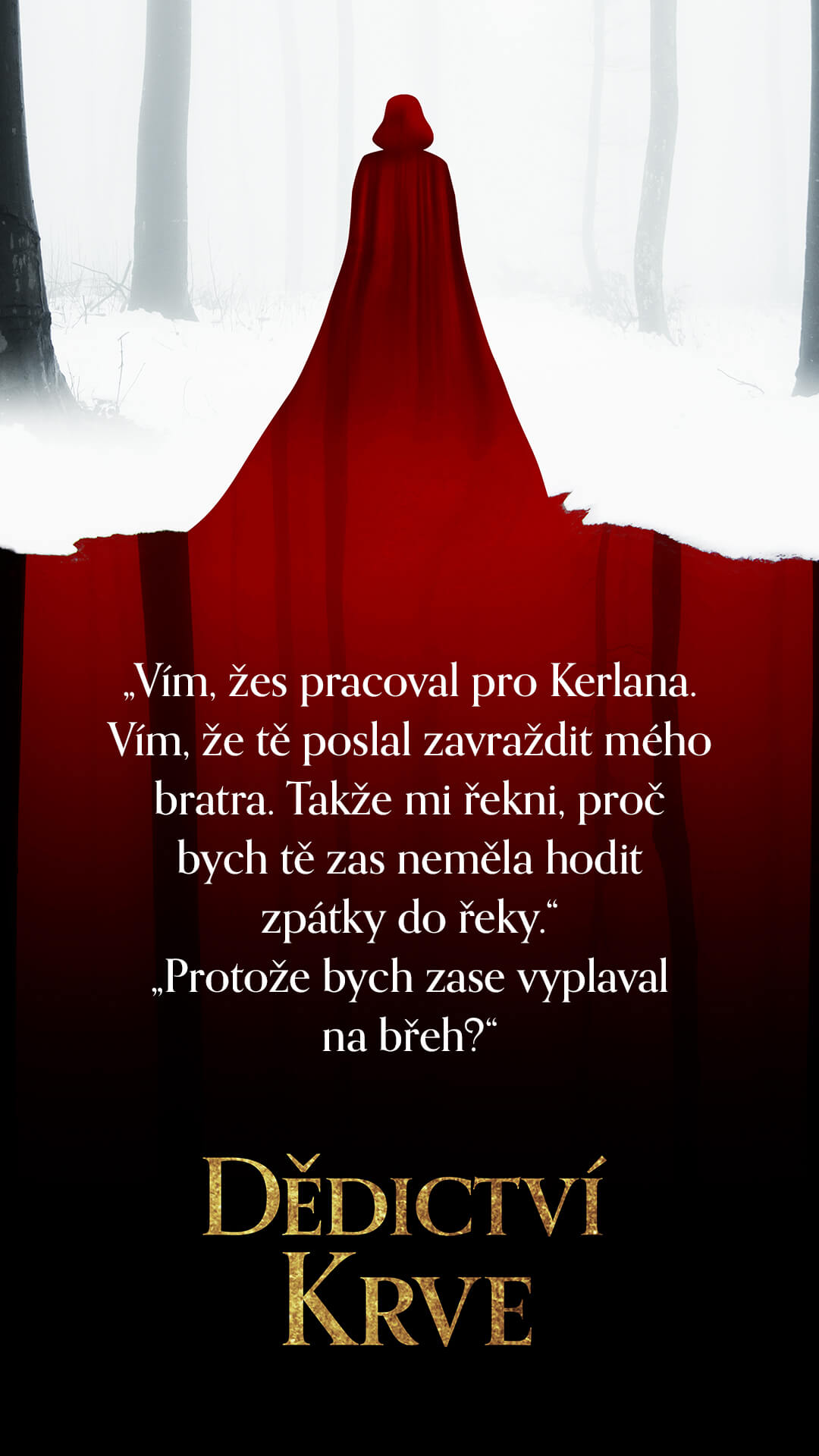 „Vím, žes pracoval pro Kerlana. Vím, že tě poslal zavraždit mého bratra. Takže mi řekni, proč bych tě zas neměla hodit zpátky do řeky.“