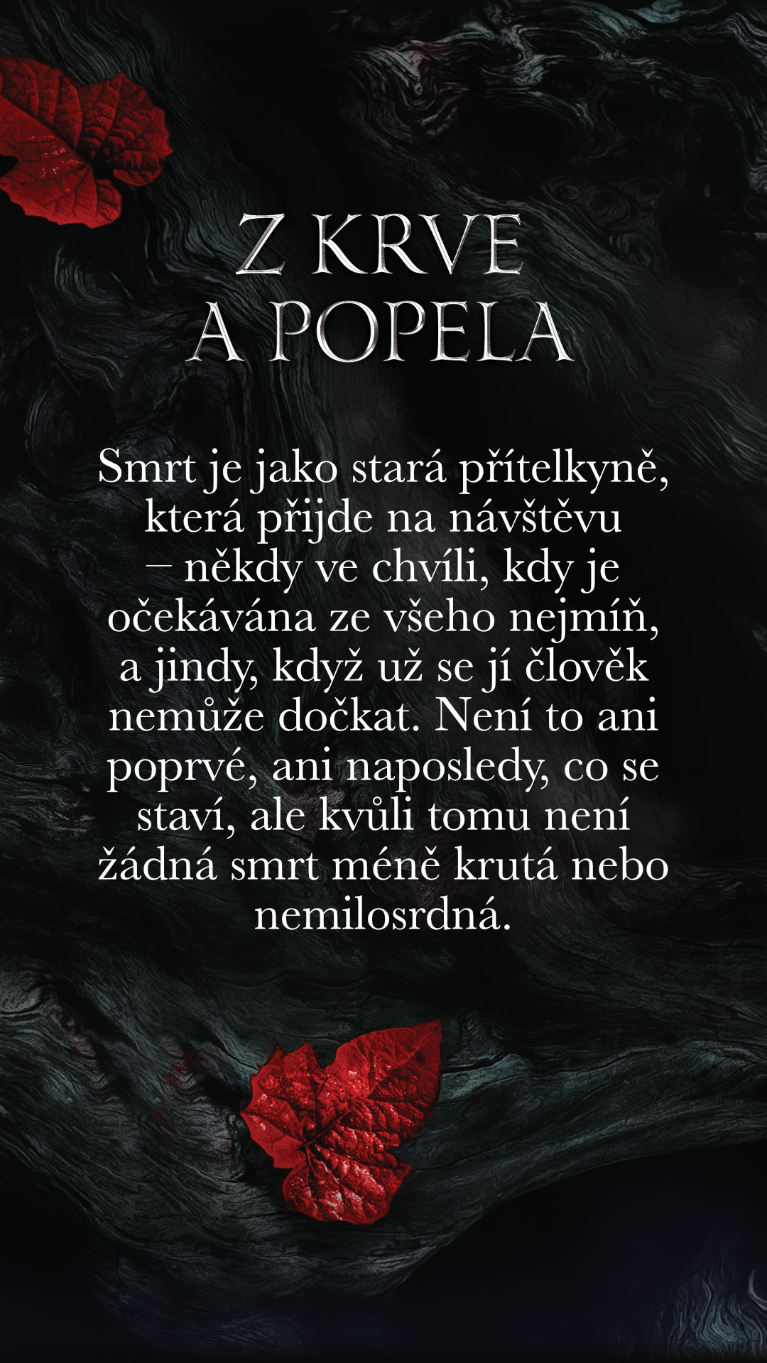Smrt je jako stará přítelkyně, která přijde na návštěvu – někdy ve chvíli, kdy je očekávána ze všeho nejmíň, a jindy, když už se jí člověk nemůže dočkat. Není to ani poprvé, ani naposledy, co se staví, ale kvůli tomu není žádná smrt méně krutá nebo nemilosrdná.