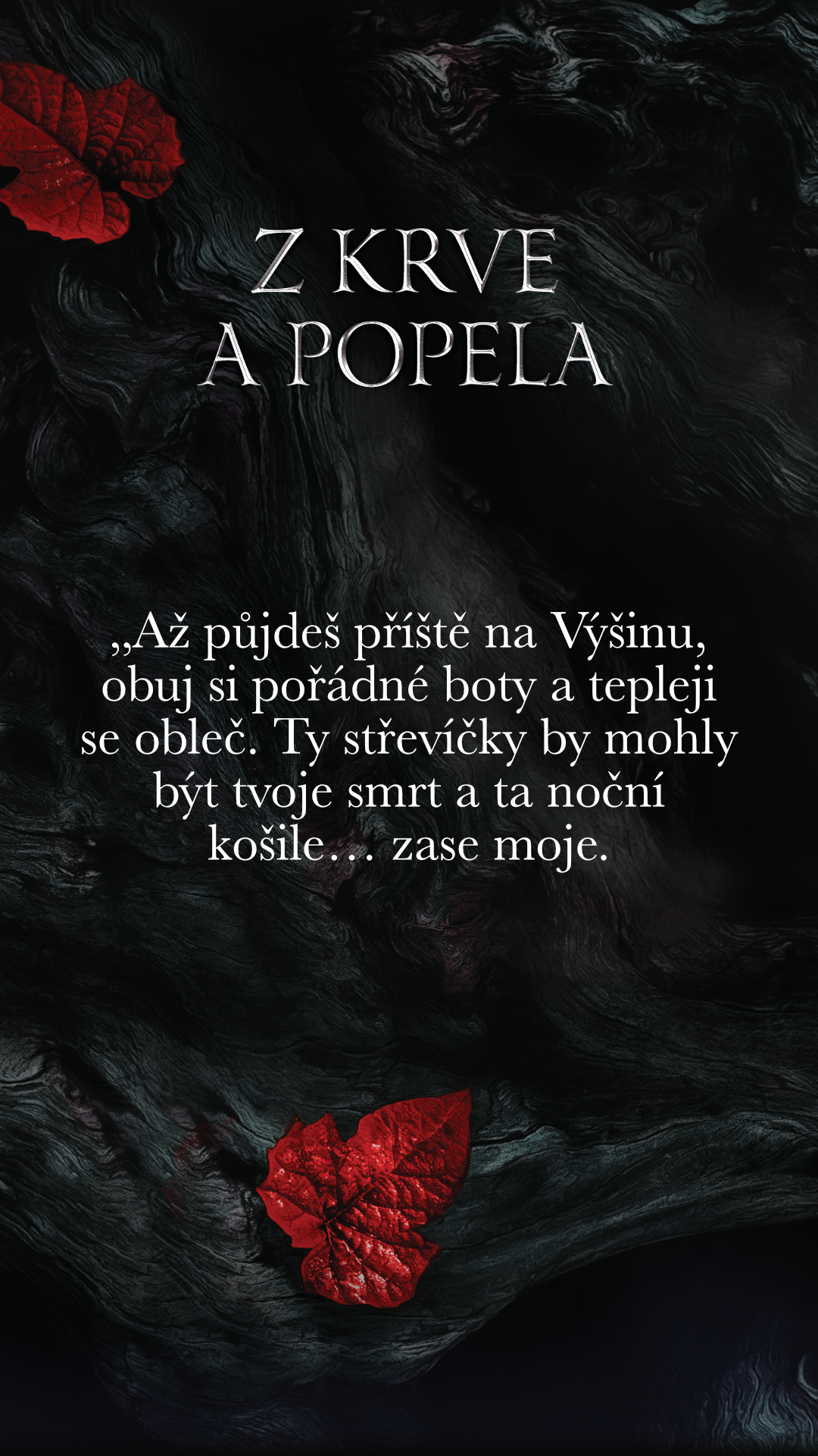 Až půjdeš příště na Výšinu, obuj si pořádné boty a tepleji se obleč. Ty střevíčky by mohly být tvoje smrt a ta noční košile… zase moje.