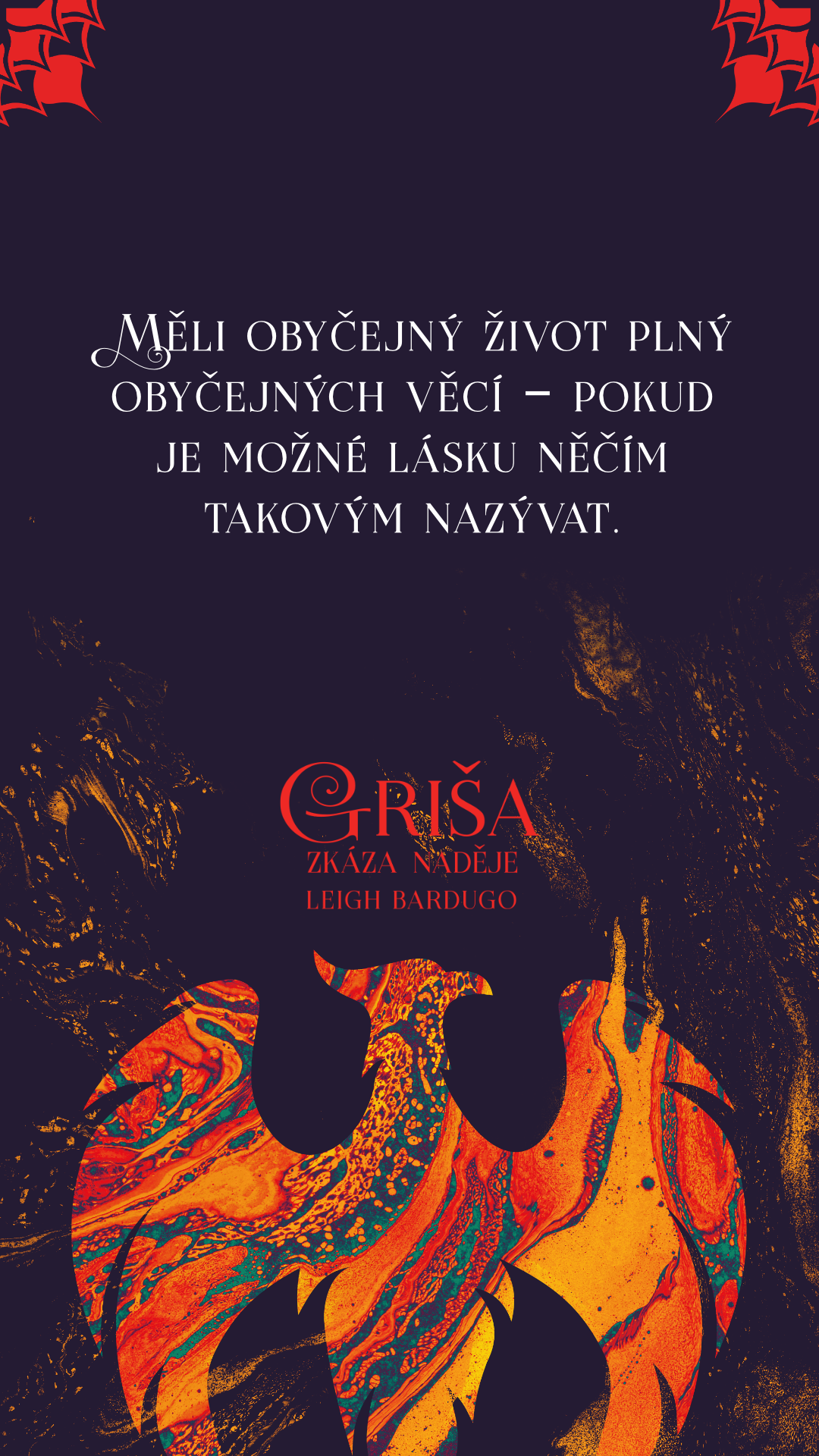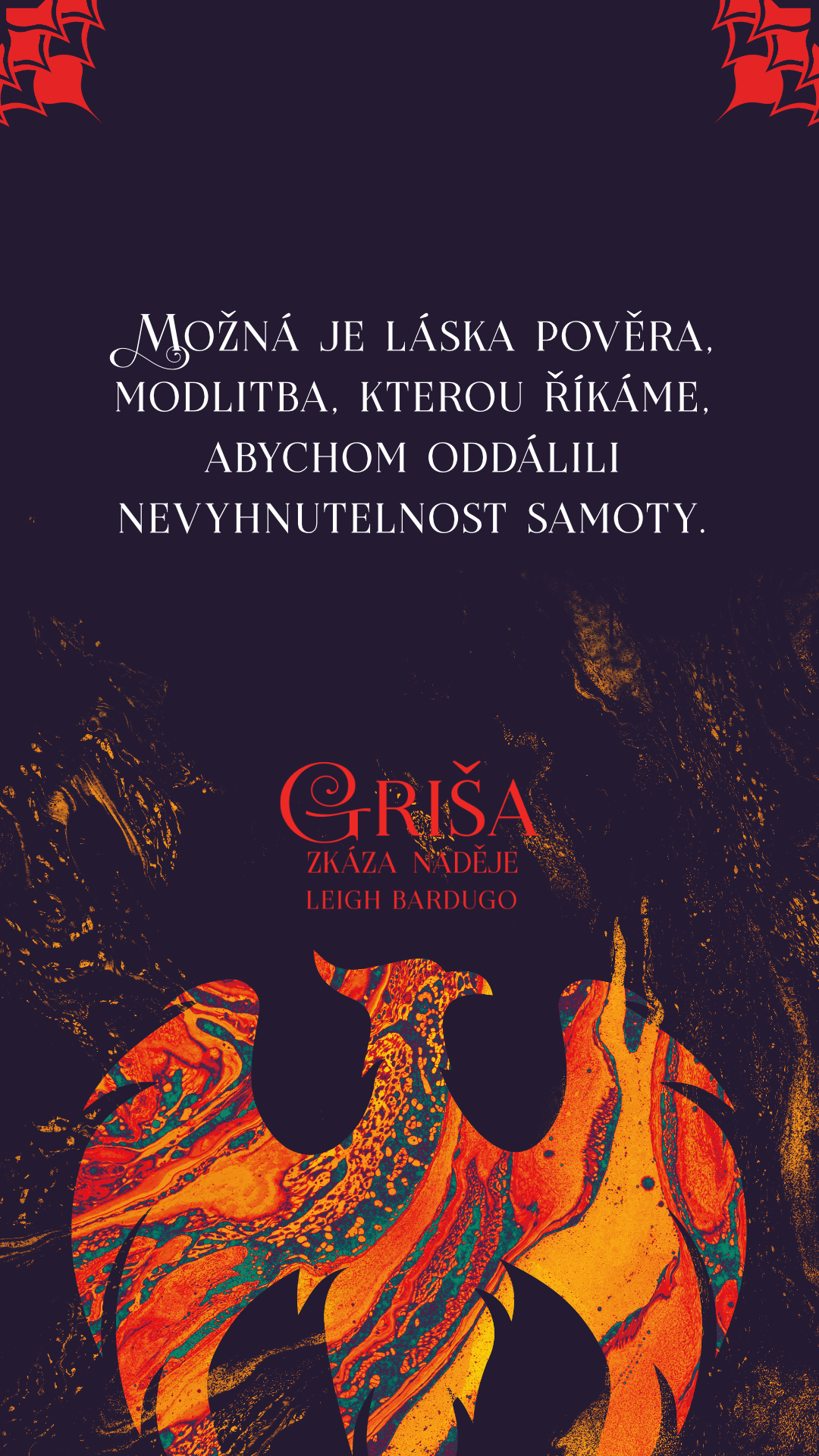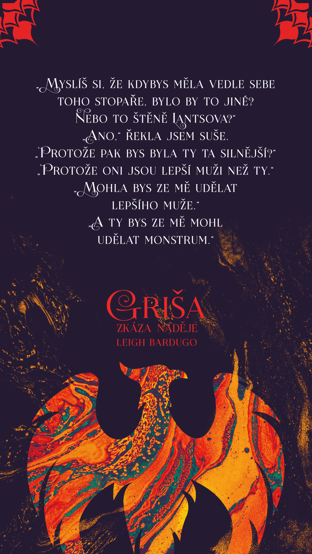 Temnyj ovládl Ravku a osud celé země tak leží v rukou zlomené světlonošky, zneuctěného stopaře a pozůstalých členů kdysi úctyhodné magické armády. Oslabená Alina se vydává po stopách nepolapitelného ptáka ohně a doufá, že cestou najde vyděděného prince. Alina bude muset uzavřít nová příměří. Jakmile však začne odkrývat Temnyjova tajemství, odhalí se jí pravda, která změní všechno, co si doposud myslela o jejich poutu a moci, jíž oplývá.