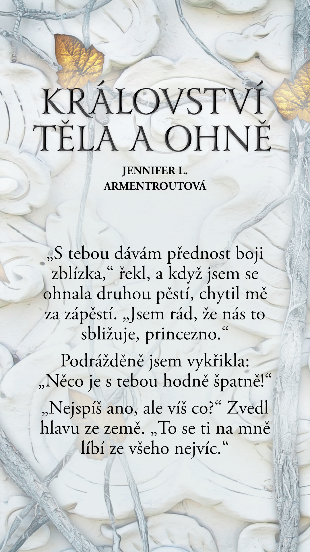 „S tebou dávám přednost boji zblízka,“ řekl, a když jsem se ohnala druhou pěstí, chytil mě za zápěstí. „Jsem rád, že nás to sbližuje, princezno.“