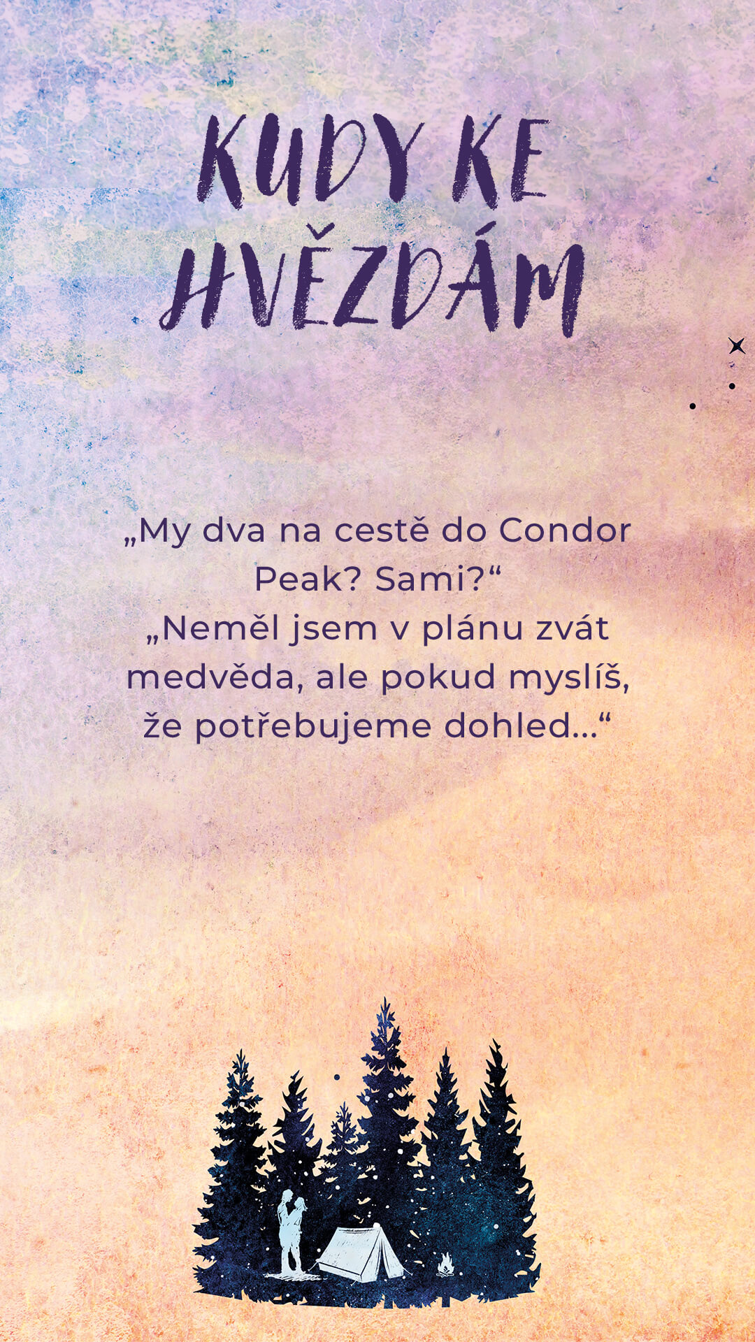 Od loňského školního plesu se bývalí nejlepší kamarádi / teď úhlavní nepřátelé Zorie a Lennon snaží jeden druhému vyhýbat ze všech sil. Ale když se kempování s partou kamarádů tak trochu nepovede, ocitnou se uprostřed divočiny. Sami. Spolu. Co by se mohlo pokazit? Zatímco se ti dva noří hlouběji a hlouběji do severokalifornské divočiny, vyplouvají na povrch křivdy, chyby, tajemství i skrývané pocity. Kouzlo třpytivé noční oblohy a vůně lesů je silné, ale může mít tohle putování vůbec dobrý konec?