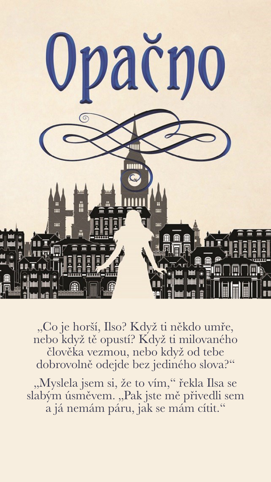 Vítejte v Opačnu a v tak trochu jiném Londýně, jehož ulice přetékají magií. Také je to ale město rozdělené mezi šest frakcí – a křehký mír právě ohrozil vůdce Měňavců Gedeon Ravenswood. Jeho dávno ztracená sestra Ilsa strávila sedmnáct let ve špatném světě, a když se portálem dostane do Opačna, konečně má pocit, že někam zapadá. Jenže její nový domov je na pokraji občanské války – a zachránit ho může jen tak, že navzdory všemu nebezpečí najde Gedeona.