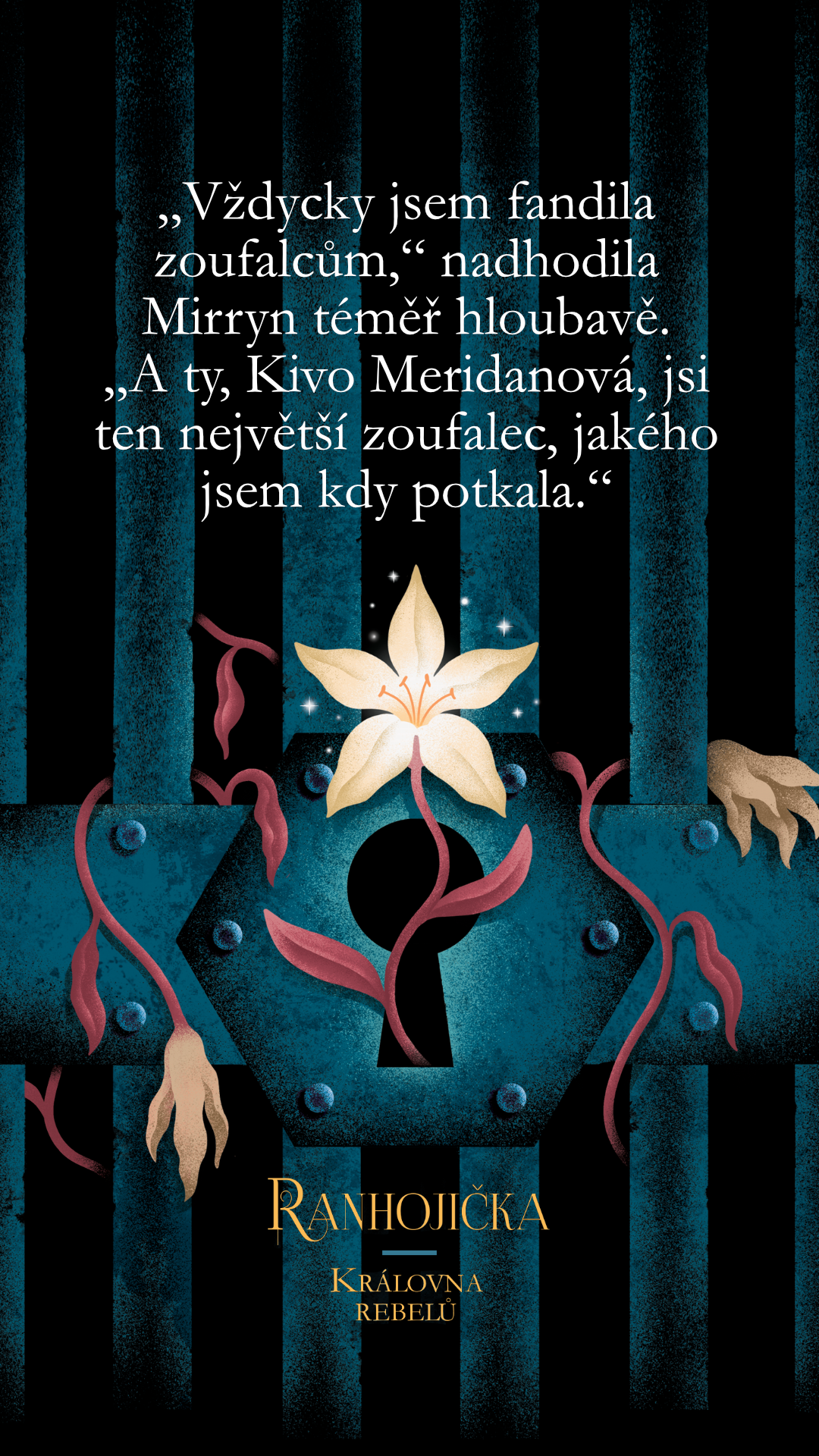 „Vždycky jsem fandila zoufalcům,“ nadhodila Mirryn téměř hloubavě. „A ty, Kivo Meridanová, jsi ten největší zoufalec, jakého jsem kdy potkala.“
