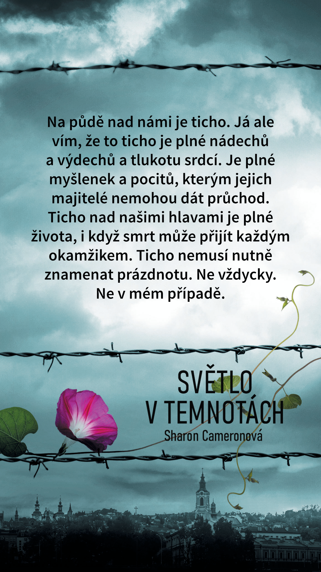 Na půdě nad námi je ticho. Já ale vím, že to ticho je plné nádechů a výdechů a tlukotu srdcí. Je plné myšlenek a pocitů, kterým jejich majitelé nemohou dát průchod. Ticho nad našimi hlavami je plné života, i když smrt může přijít každým okamžikem. Ticho nemusí nutně znamenat prázdnotu. Ne vždycky. Ne v mém případě.
