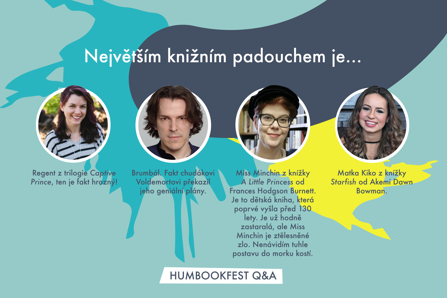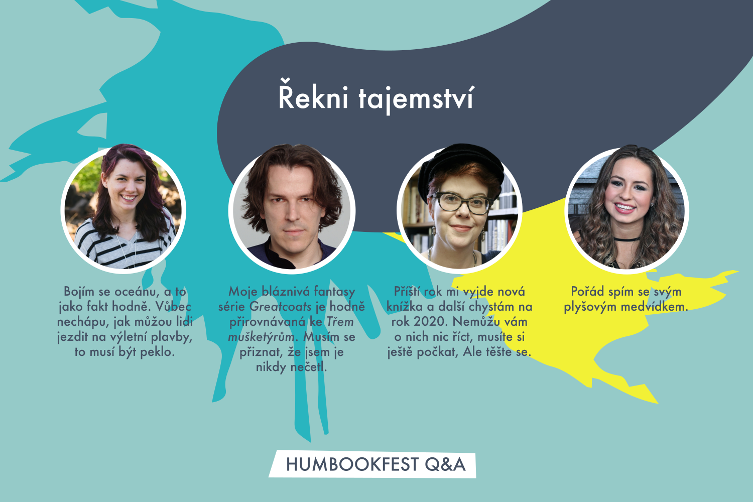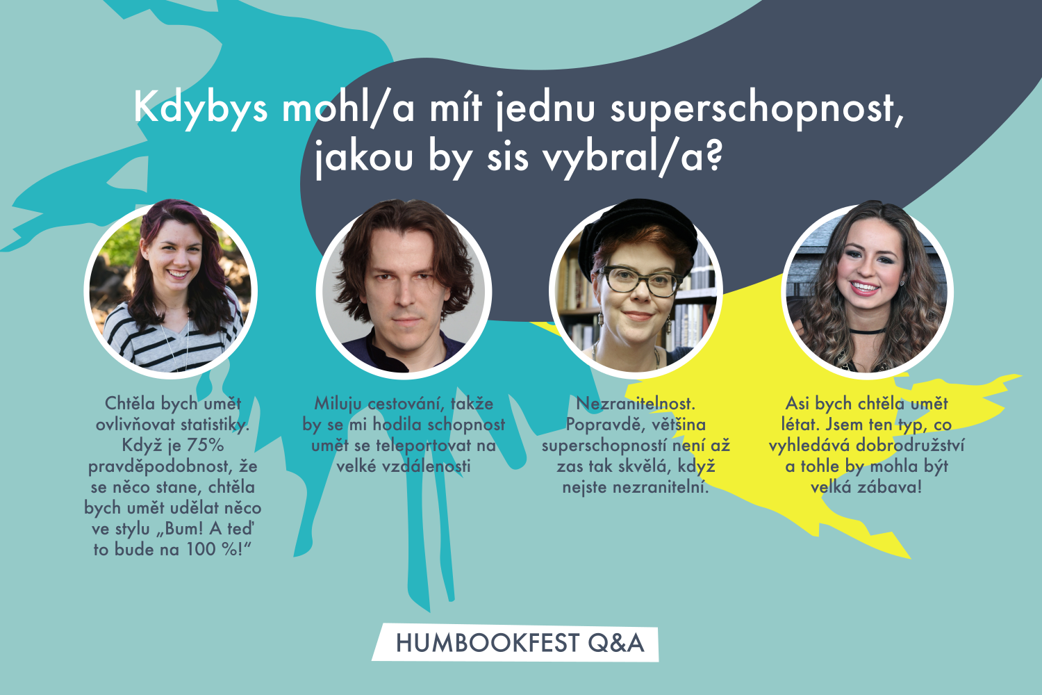 Autorům letošního HumbookFestu jsme položili 10 zásadních otázek, které na festivalové besedě asi nepadnou… Informace o preferenci ananasu na pizze, strategii přežití zombie apokalypsy či oblíbeném padouchovi jsou ovšem natolik důležité, že jim věnujeme samostatný post. Schválně nám dejte vědět do komentů, jestli vás něco překvapilo a s čím stoprocentně souhlasíte.