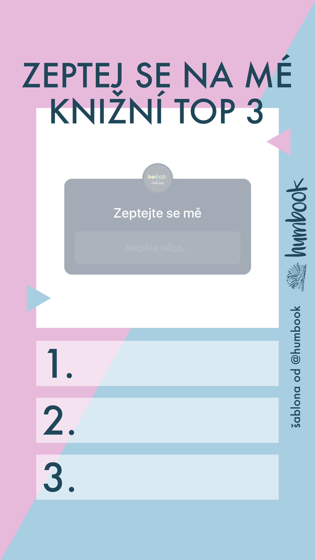 Série tří šablon, které můžete vypostovat zvlášť, nebo je dát všechny za sebou. Jedna verze je pro autory, ta další pro čtenáře. Stáhněte, nahrajte do stories, vyplňte, publikujte a nezapomeňte označit @humbook