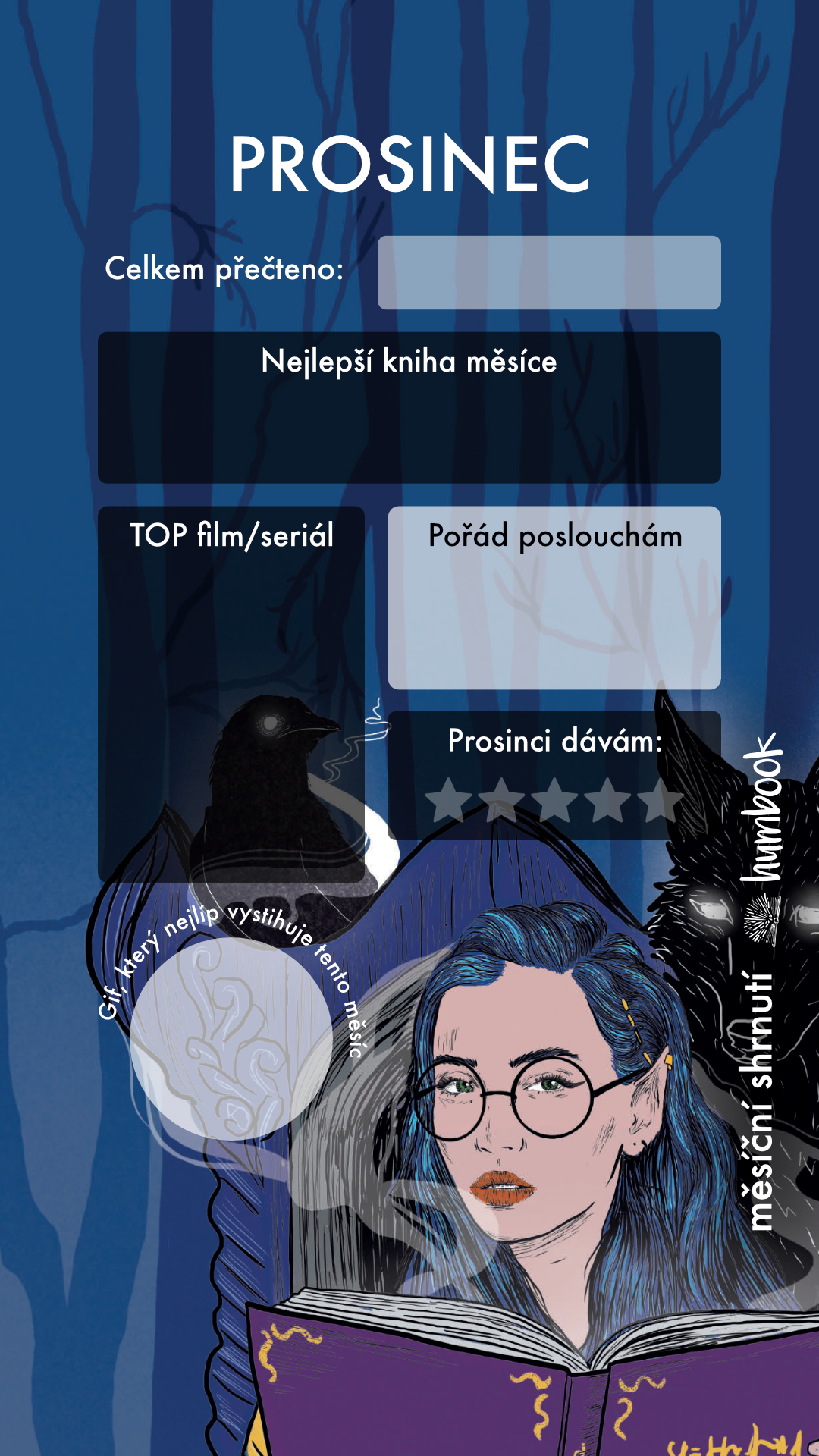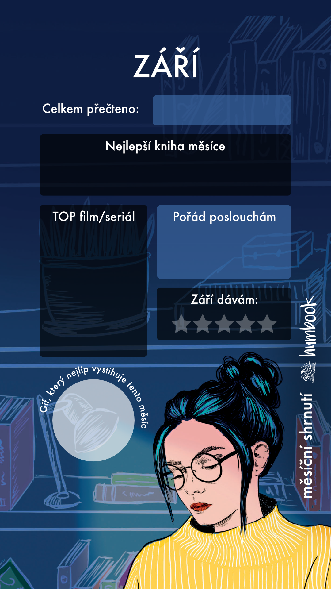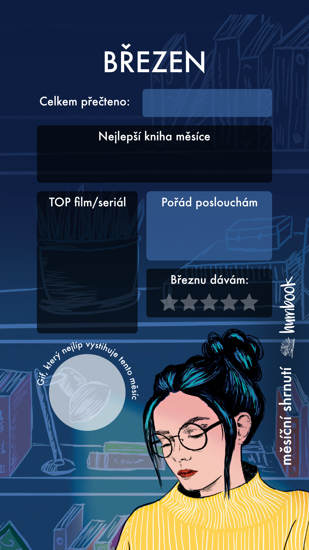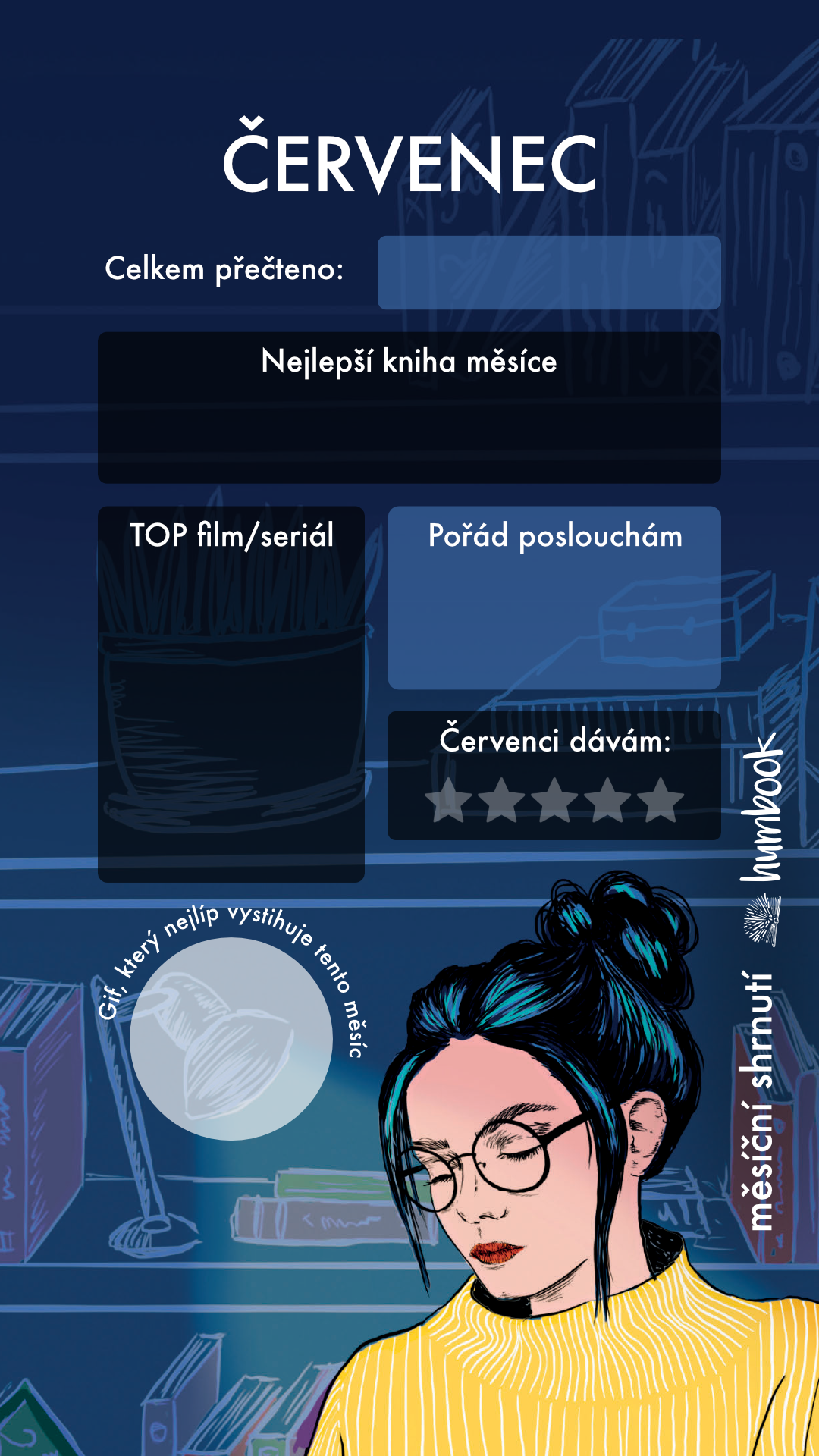 Měsíční shrnutí do stories pravidelně po celý rok. Zahajujeme speciální projekt, kdy budeme s HumbookTeamem mapovat jeden rok skrze tyhle šablony s naší knihomolkou Hedvikou. Přidejte se taky, stáhněte si šablony a každý měsíc je sdílejte u sebe na stories (budeme moc rádi, když označíte @humbook). Zapojit se můžete kdykoliv.
