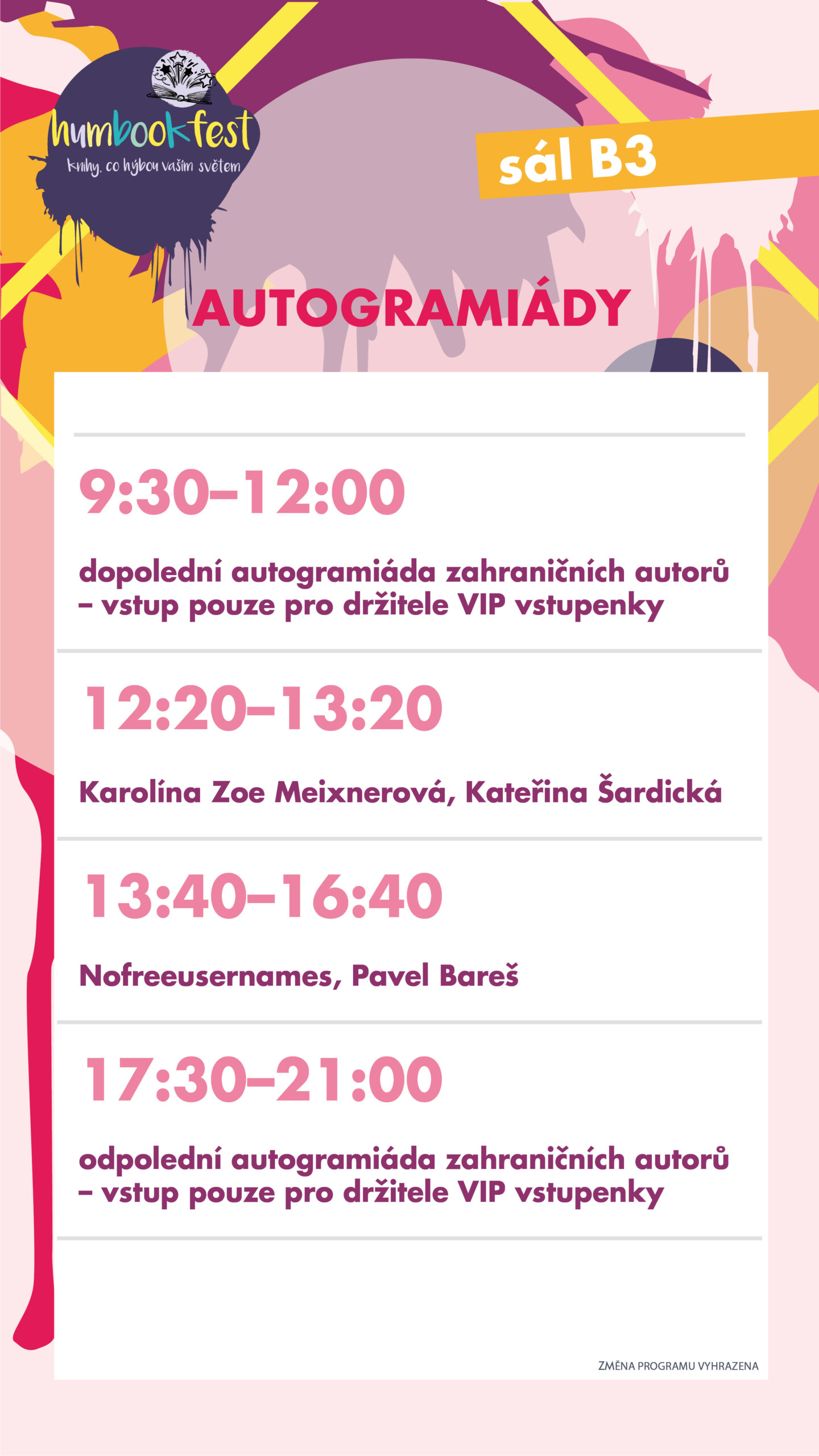 • 9:30–12:00: dopolední autogramiáda zahraničních autorů