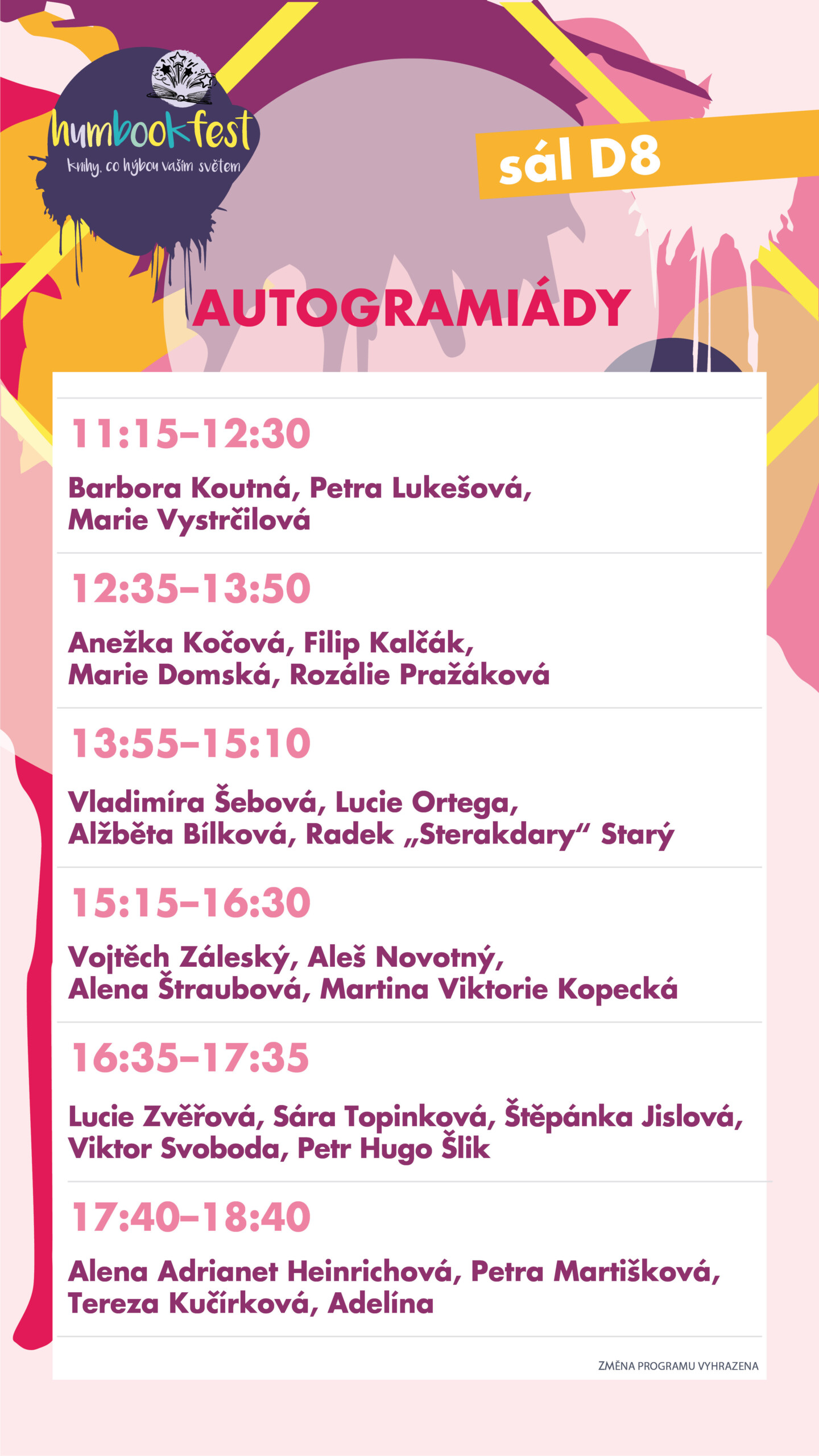 • 18:30 – 20:00: Autogramiáda HumbookTeamu