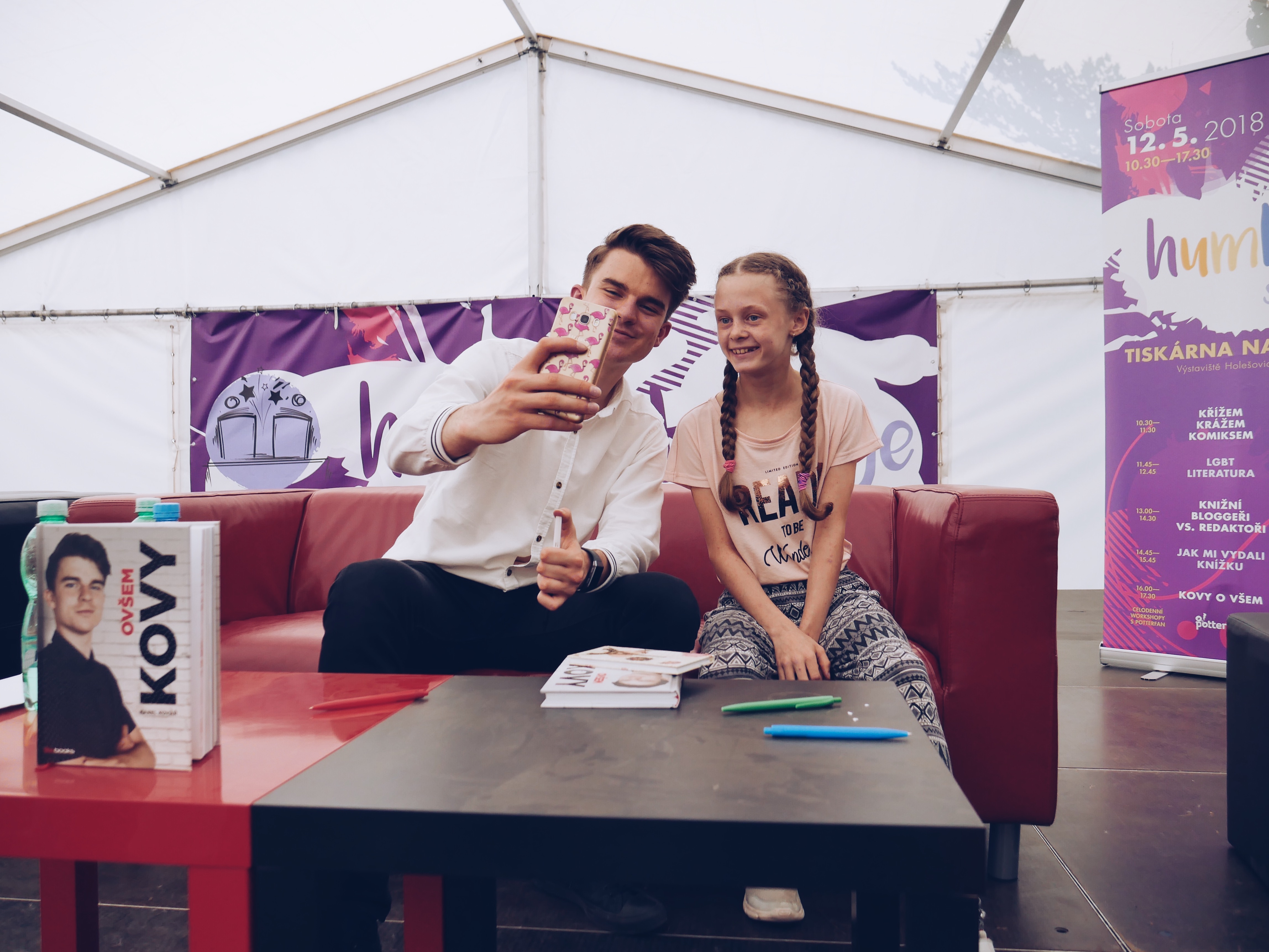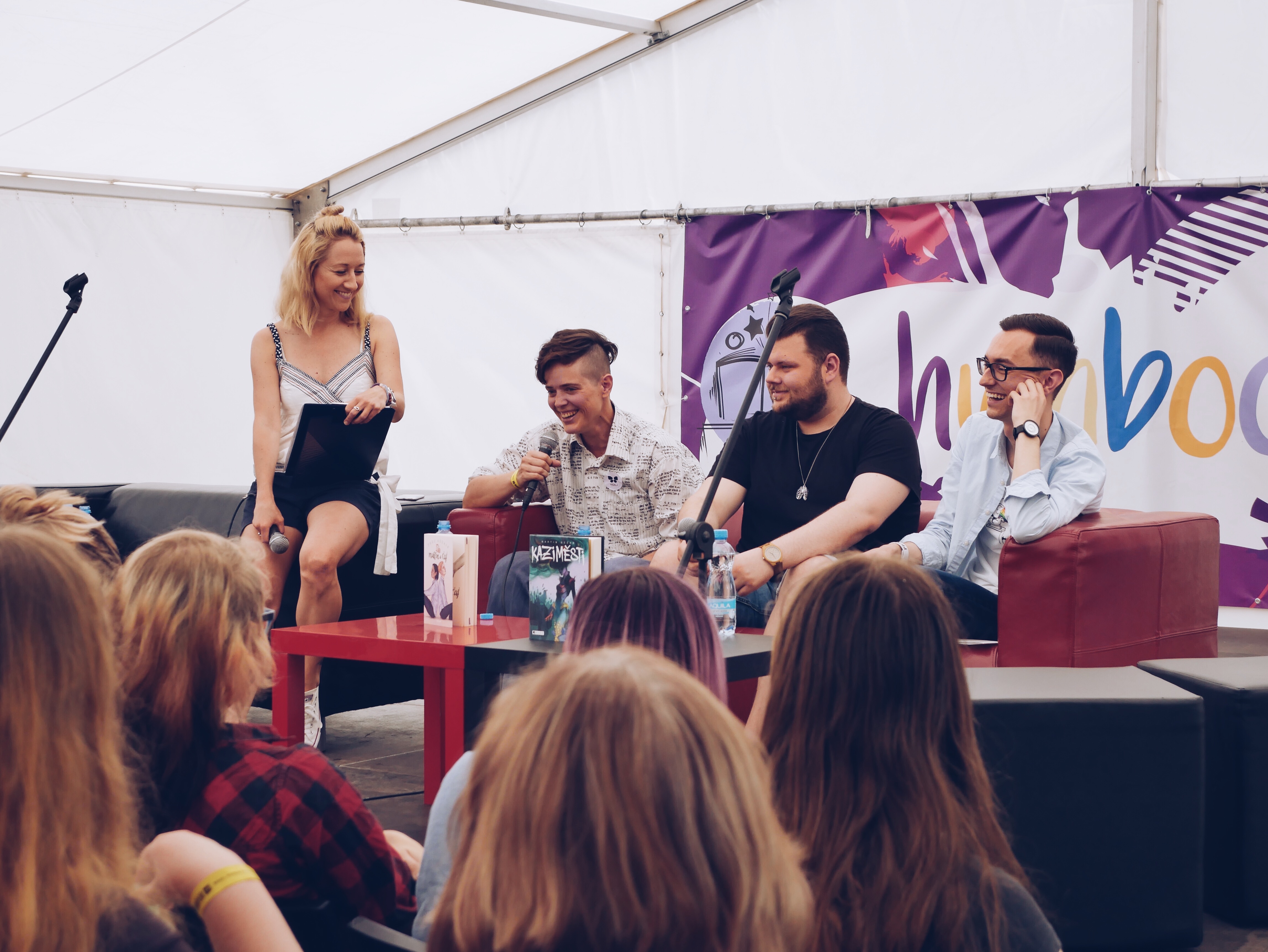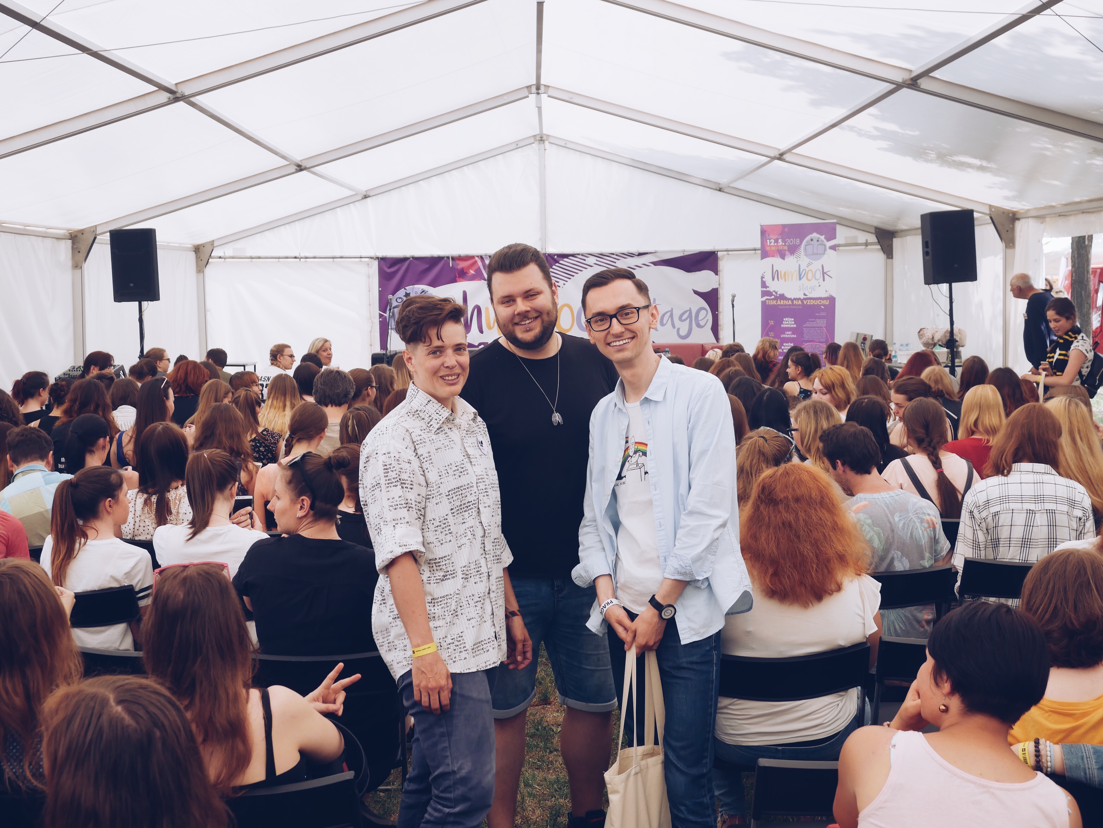 V sobotu 12. května byla na veletrhu Svět knih i HumbookStage. Přišlo vás fakt hodně a my moc děkujeme všem, kteří dorazili, byli jste skvělé publikum, které si všichni pochvalovali. Poprvé jsme s Humbookem vyrazili i mimo Fest a postavili celou young adult zónu před levým křídlem pražského výstaviště. Stánky s knihami, workshopy s Potterfany, chill out plac a velký stan na besedy a autogramiády. S autorem Martinem Šinkovským a kreslířem Petrem Novákem jsme probrali komiksy včetně jejich nové knihy Mlžný ostrov zbarvený do ruda, následovala debata o LGBT literatuře s Martinem Bečanem, Theem Addairem a Jakubem Pavlovským, nechyběl panel blogerů a redaktorů, mladí autoři Alžběta Bílková, Pavel Bareš, Anna Musilová a Miroslava Varáčková debatovali o svých spisovatelských začátcích, vyhlásila se nová Hvězda inkoustu a celý den završil Kovy se svou knihou Ovšem.