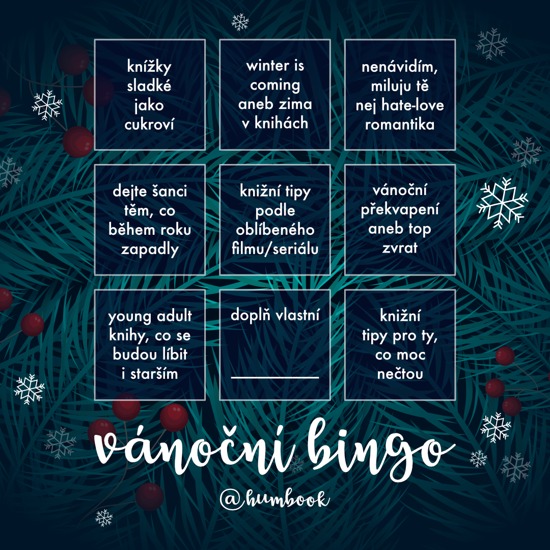 Po velkém úspěchu letního binga jsme se rozhodli udělat letos ještě jedno. A tentokrát vánoční! Máme pro vás 9 políček binga s 9 výzvami (nebo vlastně 8, protože ta 9. je vaše), které můžete splnit ve svém instagram feedu nebo na stories. A celé to opět okořeníme soutěží: na konci vylosujeme tři z vás, kteří úspěšně splníte celé bingo, a dáme vám poukázky na nákup knih na albatrosmedia.cz v hodnotě 2 000 Kč, 1 000 Kč a 500 Kč. Finálovou trojku vylosujeme z těch, co se nám budou nejvíc líbit (esteticky, nebo originalitou).