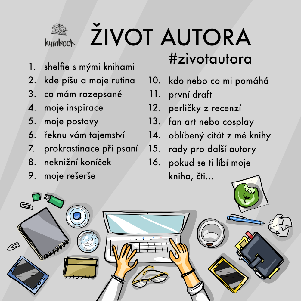 Vyzýváme české young adult autory, aby se zapojili do naší výzvy #zivotautora (zapojit se teda můžete klidně i později, ale my konkrétně tuhle výzvu vyhlašujeme hlavně na srpen). Plnit ji můžete kdekoliv – Facebook, Instagram, YouTube, web, TikTok – my se ale zaměříme na Instagram a právě tam budeme během srpna průběžně sdílet fotky publikované pod hashtagem #zivotautora. Výzvu máme i pro čtenáře: sledujte posty pod hashtagem a poznávejte či objevujte české autory, lajkujte jim fotky, komentujte, sdílejte.