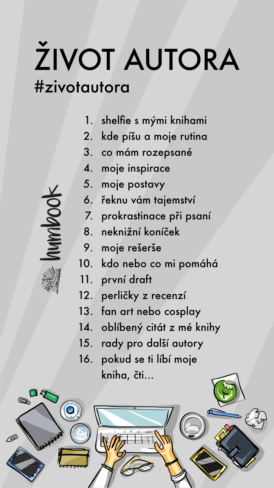 - Nezapomeňte u každého postu uvést, k jakému bodu výzvy se vztahuje. My budeme pravidelně kontrolovat hashtag #zivotautora a ve stories sdílet posty, co nám padnou do oka. Klidně nás i označujte.